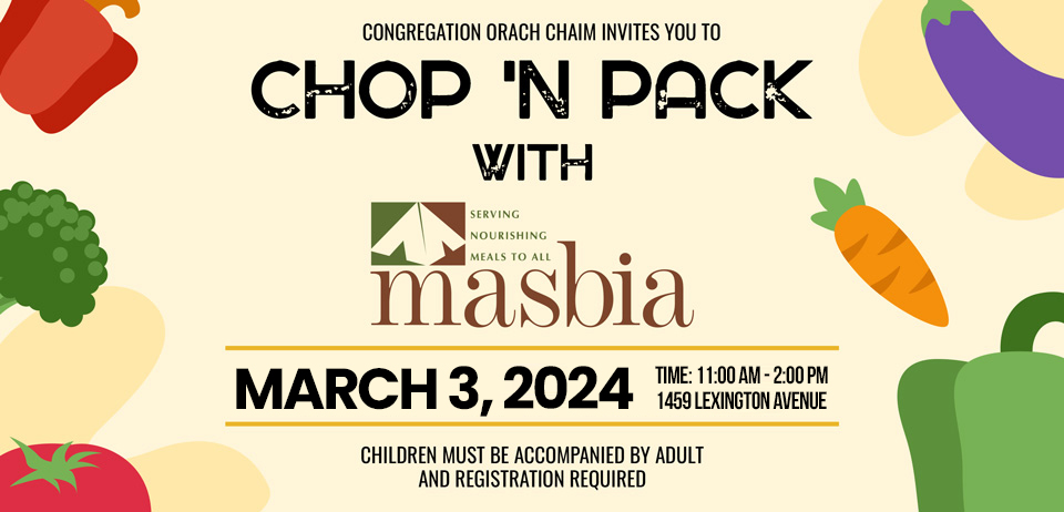 Chop ‘n Pack: Cong. Orach Chaim Invites You To Volunteer With Masbia, Sponsored By Naomi & Steve Wolinsky